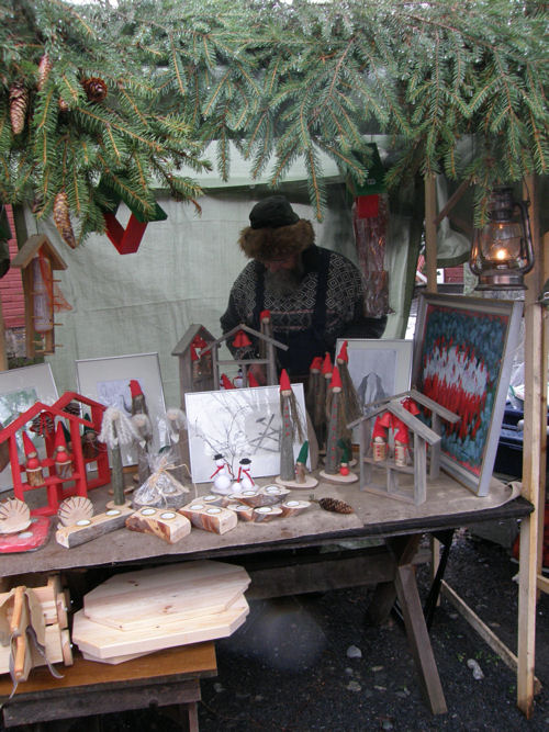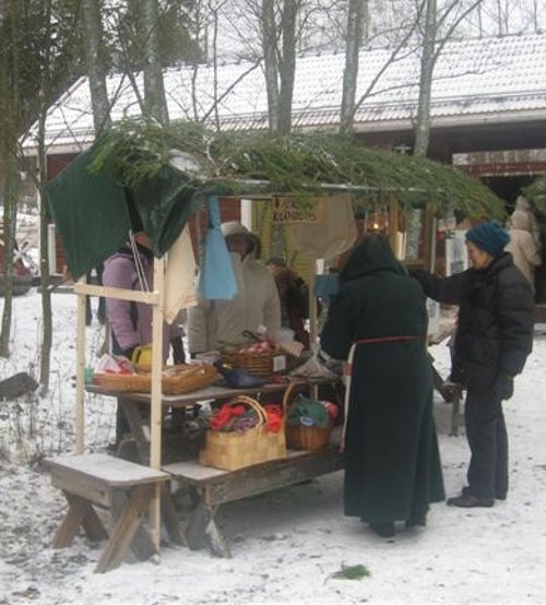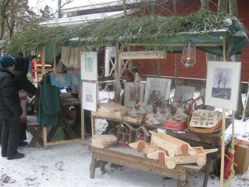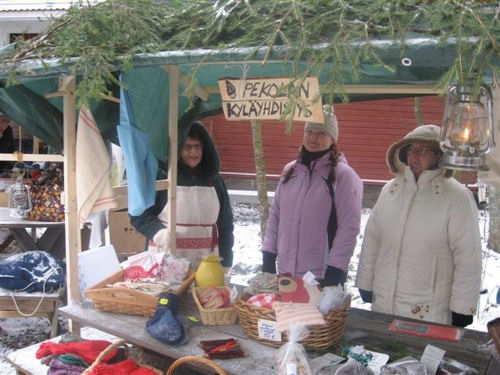 Kyläyhdistyksellä oli oma myyntipöytä, johon myytävä oli valmistettu talkoilla. Myytävänä oli perunapiirakoita, saaristolaisleipää ja piimälimppuja. Pöydästä löytyi myös villasukkia, kasseja, pöytäliinoja, jyvätyynyja, havukransseja. Myyjäispäivä oli räntäsateinen ja harmaa mutta se ei tunnelmaa haitannut.