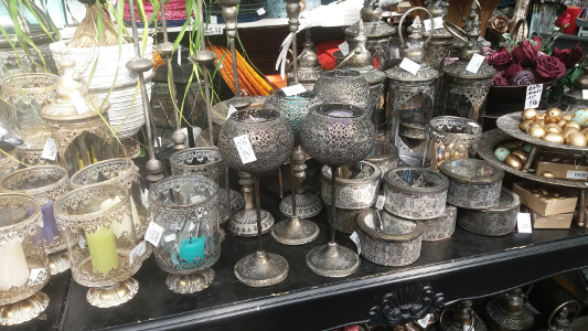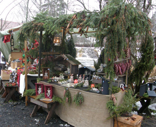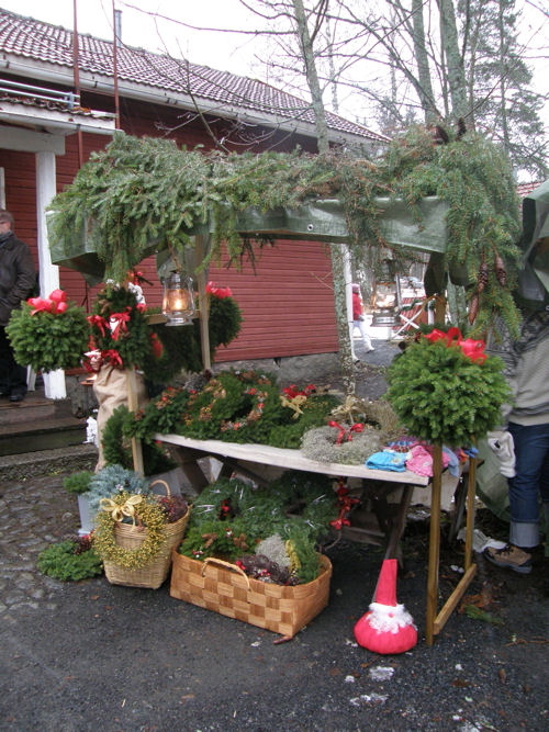 Kahvilan pihalle oli pystytetty kauniita kojuja, joissa oli tarjolla kaikkea jouluista myytävää.