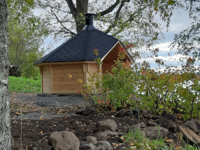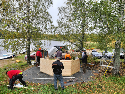 Lauantaina 25.9.2021 saatiin vihdoin kotaelementit rantaan ja reipas talkooporukka koolle.