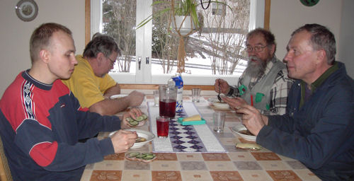 Välillä nautittiin Kyläyhdistyksen tarjoamat sämpylät ja pullakahvit.