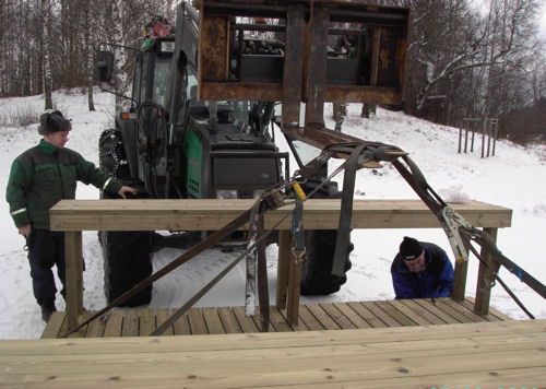 Betonilaattojen saaminen paikoilleen ja oikeaan tasoon vei aikaa...