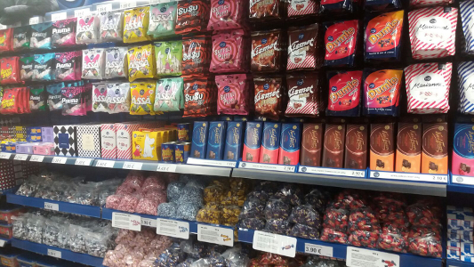 Ensimmäisenä kohteena oli Fazerin tehtaanmyymälä, tietenkin Karkkilassa!